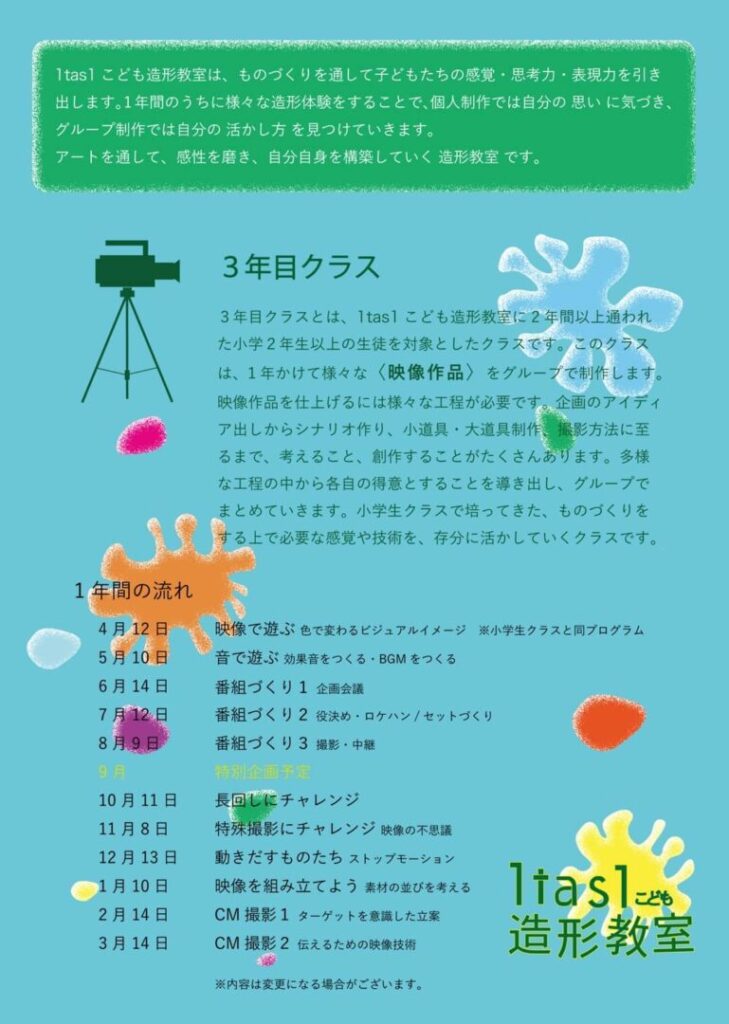 3年目クラスとは、1tas1こども造形教室に2年間以上通われた小学2年生以上の生徒を対象としたクラスです。